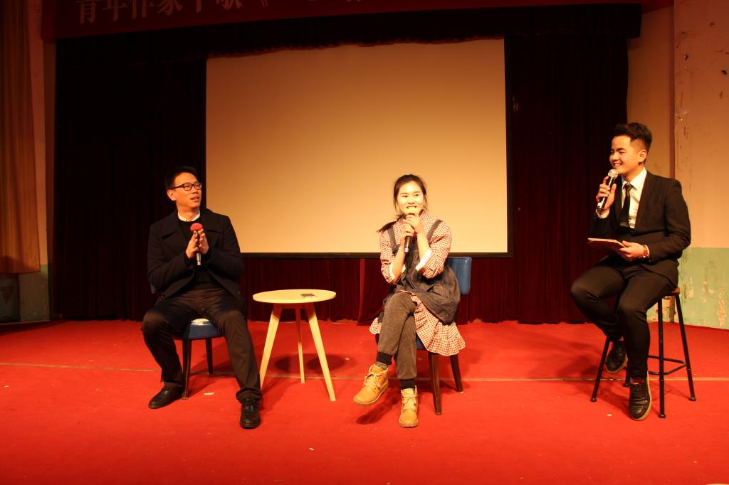 左为青年作家午歌,中为学院校友话梅