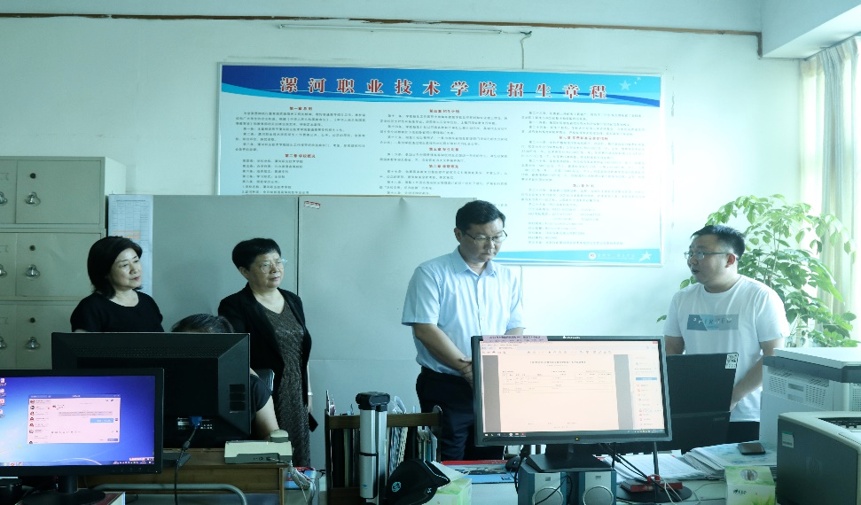 2022年我校专科提前批录取8月3日开始,学院党委书记易军鹏、党委委员、工会主席吕爱华,党委委员、副校长程传蕊一行就深入招生就业处录取现场,指导录取工作,看望慰问一线工作人员。