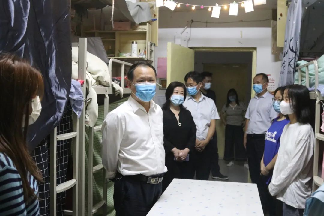 党委书记易军鹏深入学生宿舍,亲切询问了同学们日常生活和网课学习等情况,认真倾听同学们对学校工作的意见和建议,详细了解同学们的生活需求、思想动态及身体健康状况等,并就考研就业、情绪调适等问题进行了互动交流。易军鹏嘱咐同学们面对当前疫情形势,要增强主动防护意识,养成良好的生活作息习惯,保持宿舍环境卫生,积极乐观,劳逸结合,开展适当的体育锻炼,共同营造良好的学习生活环境,积极配合学校做好当前的疫情防控工作。