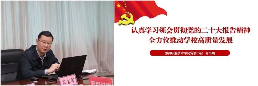 易军鹏表示,党的二十大报告思想深邃、内涵丰富,系统总结了过去五年和新时代以来所取得的重大成就和宝贵经验,科学谋划了未来五年和更长时期党和国家事业发展的目标任务和大政方针,为全体党员和全国人民注入了无穷力量。下一步,学院将把深入学习贯彻党的二十大精神落实到办学治校各个方面,全面贯彻党的教育方针,以推进“双高校”建设和职教本科建设为抓手,提质培优建设豫中南区域职业教育创新发展新高地,为全面建设社会主义现代化国家培养更多德智体美劳全面发展的社会主义建设者和接班人。