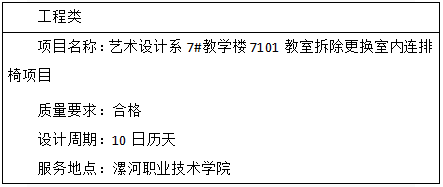 一、项目名称:艺术设计系7#教学楼7101教室拆除更换室内连排椅项目