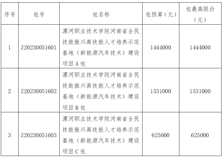 新葡的京集团8814河南省全民技能振兴高技能人才培养示范基地(新能源汽车技术)建设项目招标项目的潜在供应商应在漯河市公共资源电子交易平台获取招标文件,并于2023年11月08日09时30分(北京时间)前递交投标文件。