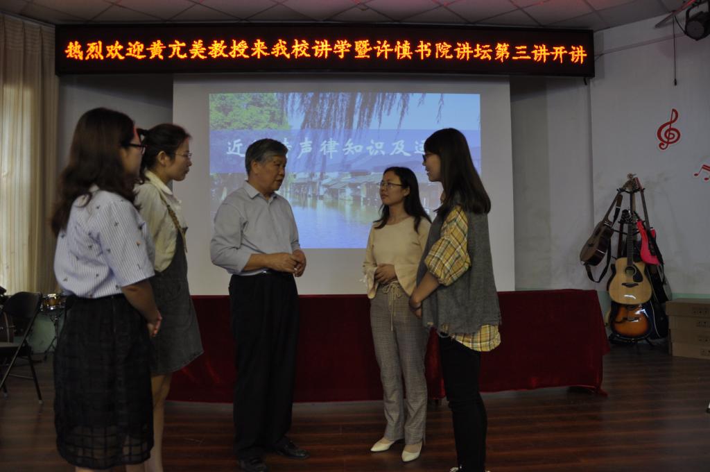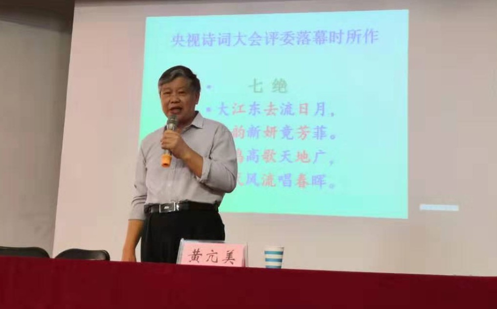 黄教授在讲学中多次指出,中华优秀传统文化是中华民族的精神命脉,诗歌作为中华传统文化中重要的组成部分,近年来越来越受重视,许慎文化学院的同学们应该注重自身诗歌知识的积累,从格律诗的欣赏和写作做起,传承中华优秀传统文化。教师们应该将教学改革、科研方向与许慎文化结合起来,与中华传统文化结合起来,担负起弘扬中华优秀传统文化的重任。