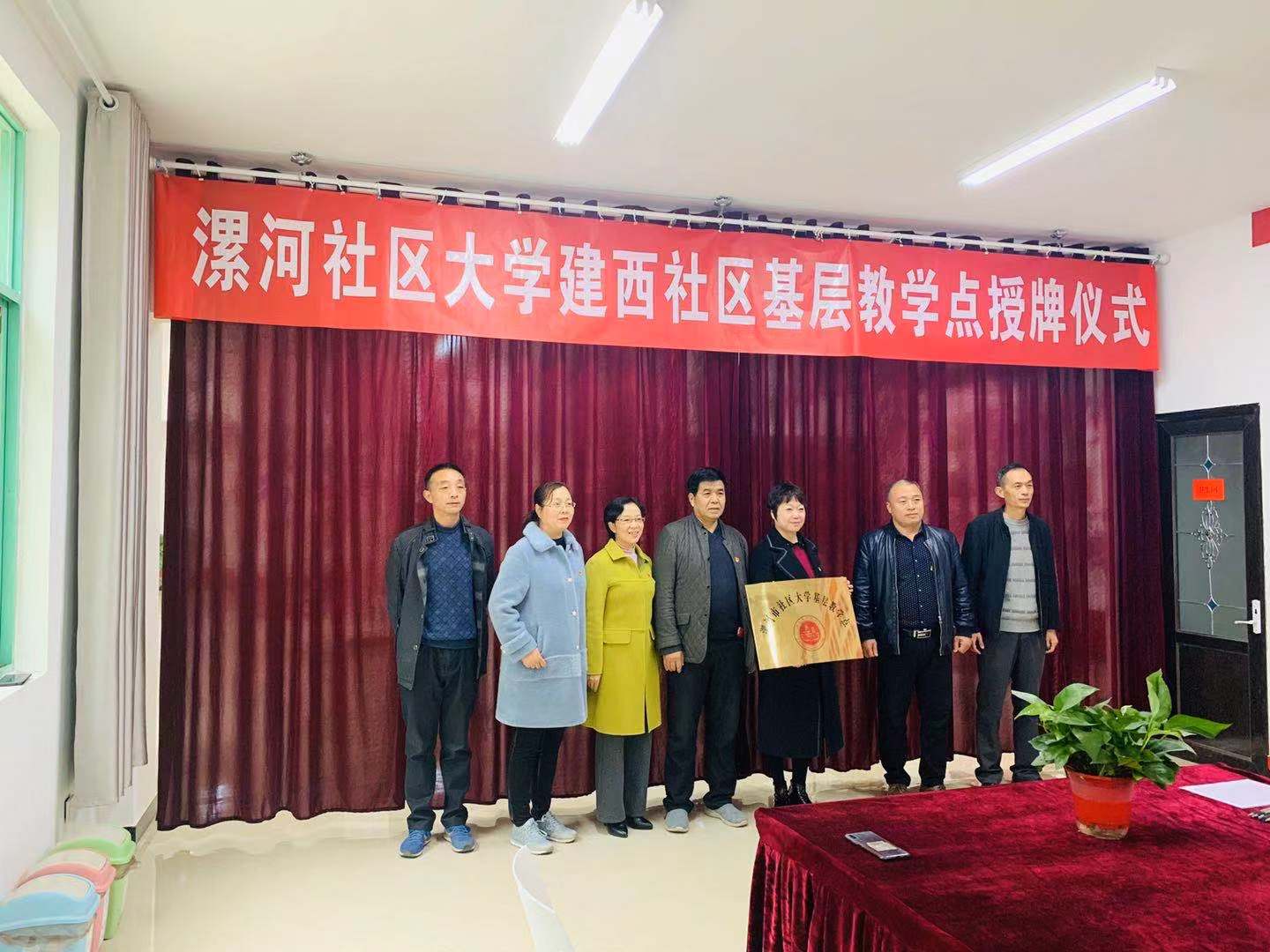 11月23日,漯河市社区大学副校长、新葡的京集团8814成教部主任朱保华,副主任杨子峰,办公室主任胡安娜,教师石殿杰、刘前进、徐莉一行6人来到漯河市顺河街办事处建西社区进行漯河市社区大学建西社区基层教学点授牌。