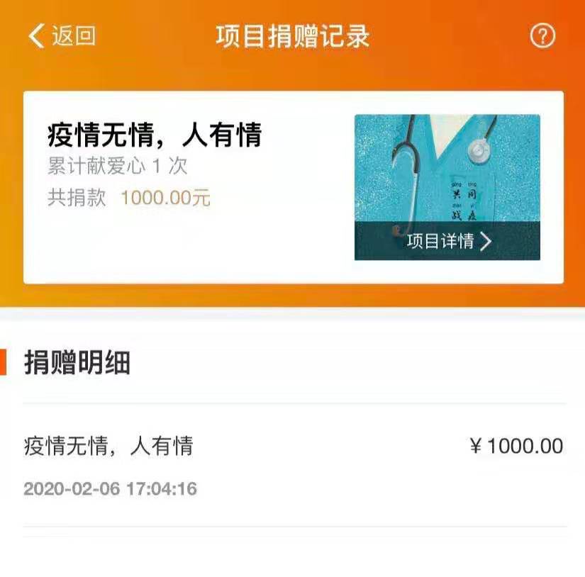 新冠肺炎疫情牵动全国人民的心,在这场没有硝烟的战争面前,全国上下一心,众志成城,共克时艰。新葡的京集团8814党委积极行动,发起倡议支援抗疫一线,学校广大师生以实际行动为打赢疫情防控阻击战作出贡献。2月6号,我校许慎文化学院2018级小学教育专业学生孟雪宁通过支付宝向武汉抗疫捐款1000元,这些钱都是她在校期间利用周末的时间做兼职舞蹈老师辛苦攒下来的。