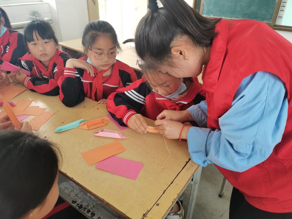 漯河职院许慎文化学院团总支书记袁海伟、教师党员李珍珍、学生党员单雨晨等一行五人到商桥镇中心小学开展许慎文化传播乡村小学支教活动。教师党员李珍珍给商桥镇中心小学二年级学生带来一节印象深刻的字理教学示范课,传播许慎文化,讲解文字奥秘,激发学生们探索文字的兴趣。学生党员单雨晨带领入党积极分子胡凯悦、王紫晗同学走进五年级课堂,给学生们上了一节生动的手工制作教学示范课。