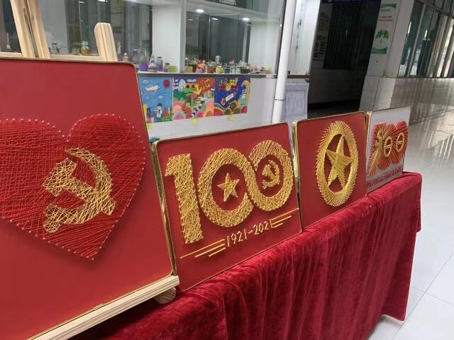 近日,漯河职院许慎文化学院举办2021年度职业教育活动周暨“红心向党”美工作品展,庆祝党的百年华诞,回顾党的光辉历程,赞颂党的丰功伟绩,紧扣“红心向党”主题,展出了衍纸团扇、衍纸盆栽、刻纸、钉子画、书法等103件学生作品,作品展为期两天。