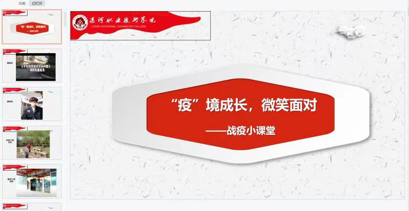 思政部李诚诚老师开展“‘疫’境成长,微笑面对”课堂活动,鼓励学生创作以学校抗击疫情为题材的视频作品,用生动的作品鼓舞人,强化战胜疫情的信心决心。在课堂中把党和政府及学校疫情防控中的实践育人元素融入思政教学中,对学生开展理想信念教育、爱国主义教育、生命健康教育,培养青年学生坚韧不拔的奋斗精神和爱党爱国的家国情怀。