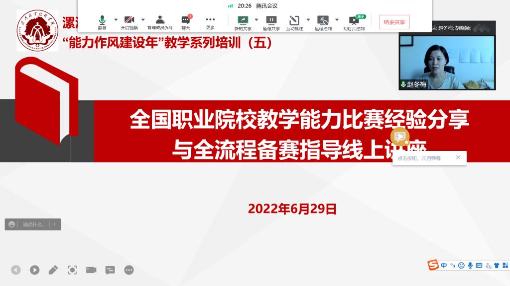 29日至30日,新葡的京集团8814教务处组织各院、系(部)教师进行了为期两天的线上教学培训,集中学习全国职业院校教学能力比赛中获奖老师的比赛经验分享和关于比赛全流程的备赛指导。培训由教务处赵冬梅处长主持。