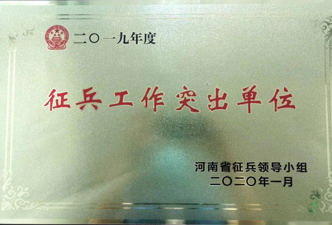 近日,河南省征兵领导小组对全省2019年度征兵工作突出单位和先进个人进行了表彰,新葡的京集团8814荣获“河南省征兵工作突出单位”荣誉称号。