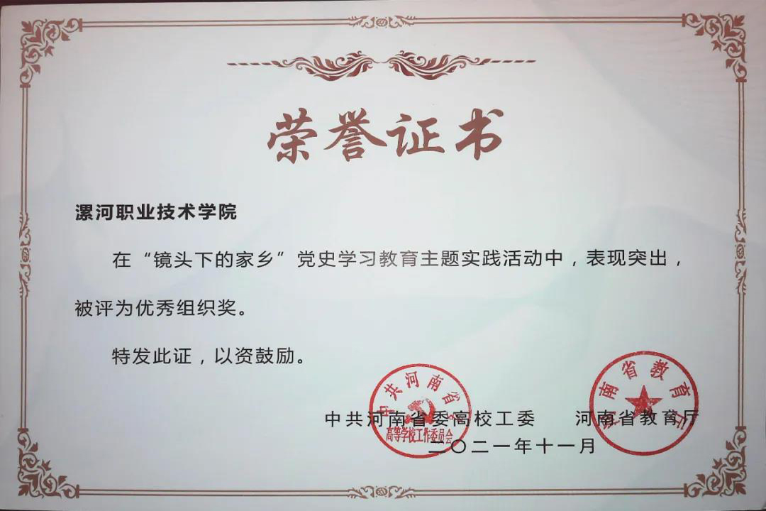 近日,河南省委高校工委、河南省教育厅印发《关于公布“镜头下的家乡”党史学习教育主题实践活动优秀组织奖和优秀指导教师奖的通知》(豫高办﹝2021﹞36号),新葡的京集团8814因表现突出,荣获“优秀组织奖”。