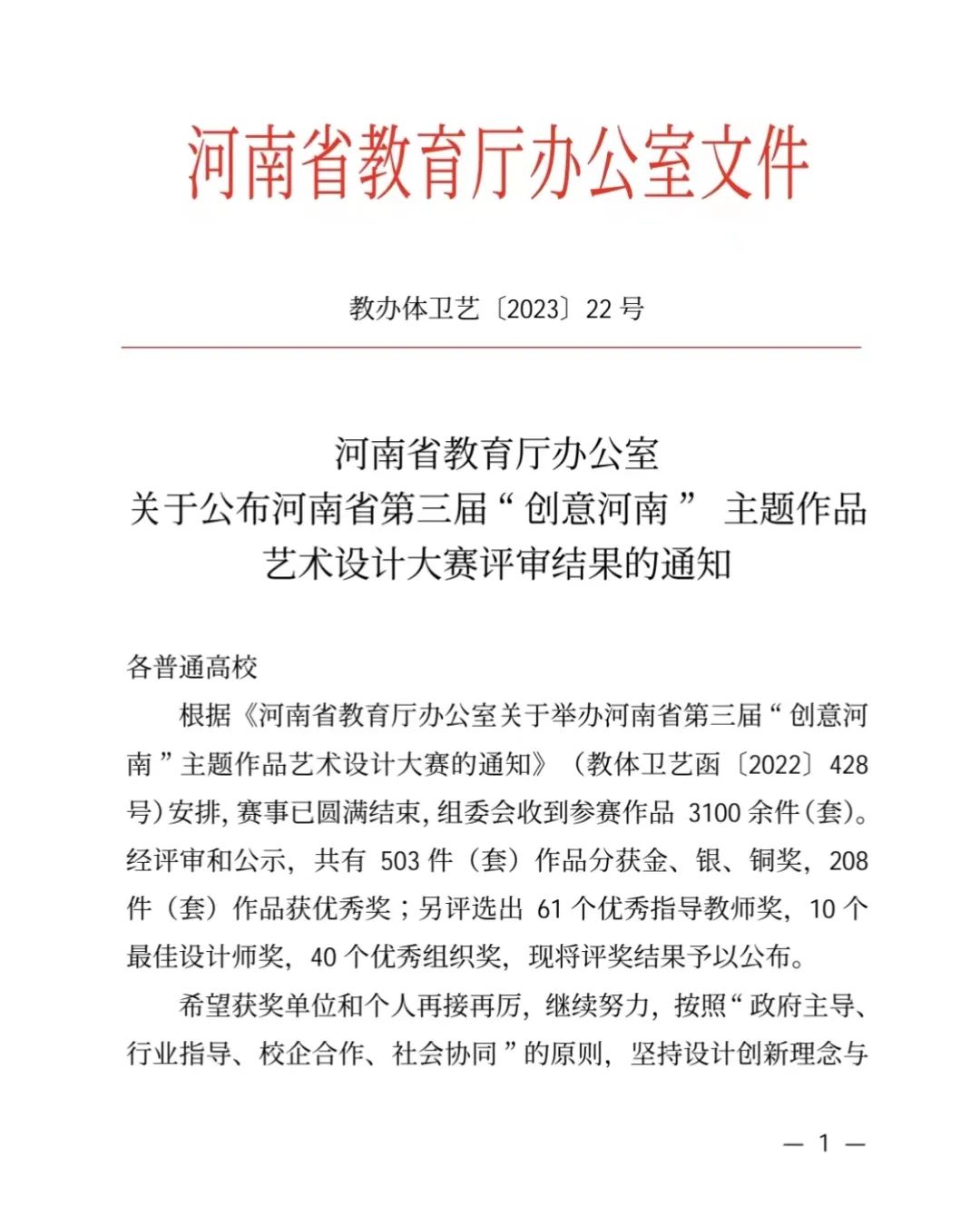近日,河南省教育厅办公室下发《关于公布河南省第三届“创意河南”主题作品艺术设计大赛的通知》(教办体卫艺〔2022〕428号),经评审和公示,新葡的京集团8814艺术设计系谢梦媛老师作品《菜系文化软装设计》获得专业组银奖,王钊老师作品《红色百年》获得专业组优秀奖。学生田甜、乔晋艺作品《梅兰竹菊纹样现代设计》(指导老师王岩)获得学生组银奖,学生王雪琴作品《家乡・印象》(指导老师马欢)、学生郝梦瑶、李琰作品《国控星鲨品牌logo设计》(指导老师王岩)、学生鹿大地作品《胡岗村红色村落品牌设计》(指导老师王钊)获得学生组优秀奖。