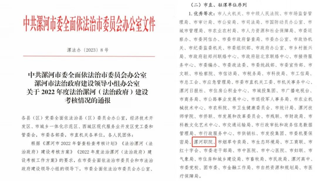 近日,中共漯河市委全面依法治市委员会办公室、漯河市法治政府建设领导小组办公室印发《关于2022年度法治漯河(法治政府)建设考核情况的通报》(漯法办〔2023〕8号),新葡的京集团8814被评为2022年度法治漯河(法治政府)建设考核优秀等次。