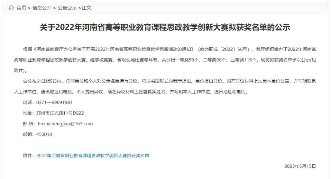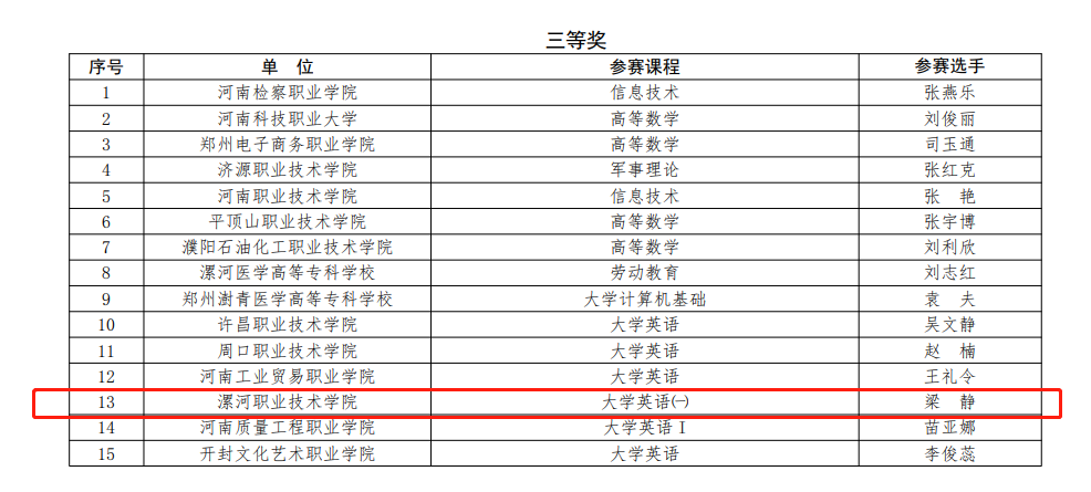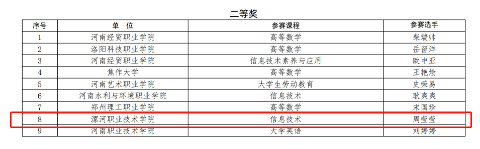 5月15日,河南省教育厅公布了2022年河南省高等职业教育课程思政教学创新大赛拟获奖名单,新葡的京集团8814选派的6名参赛教师取得了优异成绩。其中,周莹莹、梁静分别荣获公共基础课程组二等奖、三等奖;孙冬玲、彭芳分别荣获财经农医课程组二等奖、三等奖;李远、安仕琪分别荣获制造电建课程组二等奖、三等奖。