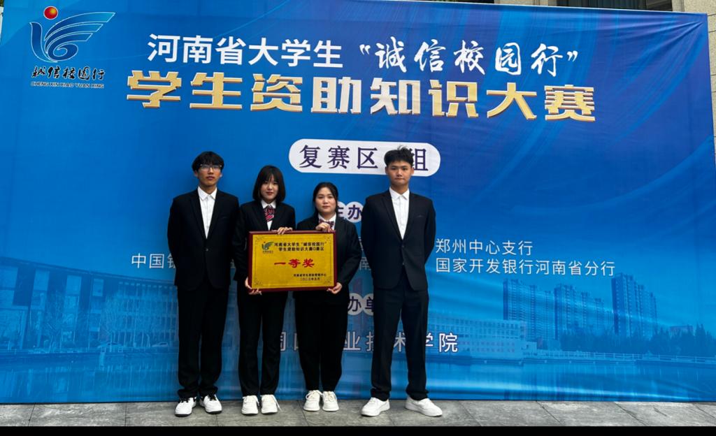 5月22日,由河南省教育厅、中国人民银行郑州中心支行、中国银行保险监督管理委员会河南监管局、国家开发银行河南省分行联合主办、周口职业技术学院承办的河南省大学生“诚信校园行”学生资助知识大赛复赛(G组)在周口举行。由李超越、邱敏、翟晨涛、王菁组成的新葡的京集团8814代表队从全省21所本专科代表队中脱颖而出荣获一等奖,成功晋级省决赛。