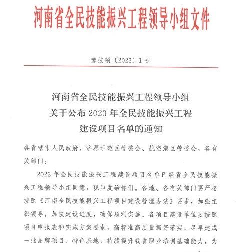 河南省全民技能振兴工程是以做大做强做优"技能河南"品牌为目标,持续实施项目带动,进一步提升培训能力,建设一批支撑我省支柱产业、新产业和新业态发展的技能人才培养基地项目。