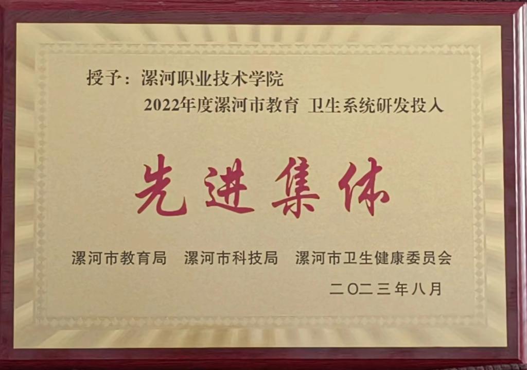 9月15日,漯河市教育、卫健系统研发工作会议在漯河市教育局召开,会上对先进集体和先进个人进行了表彰。新葡的京集团8814荣获“2022年度漯河市教育、卫生系统研发投入先进集体”