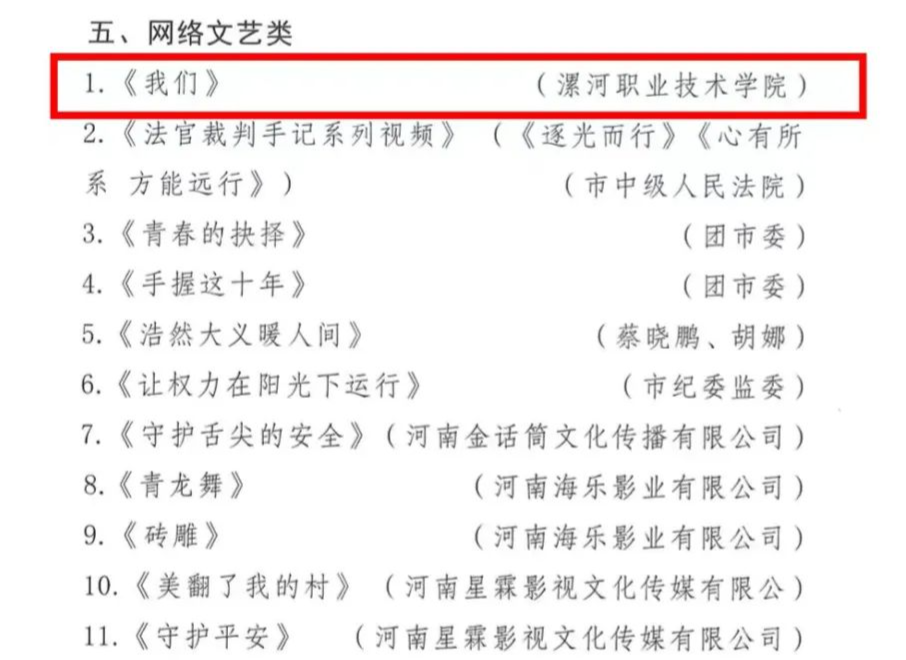 近日,由中共漯河市委宣传部主办的2023年漯河文艺精品评选活动获奖名单公布,新葡的京集团8814旅游与酒店管理系报送的原创作品《我们》被评为网络文艺类市级文艺精品。