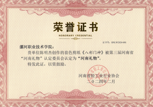 近日,在河南省轻工业行业协会主办的“第二届河南省工艺美术精品‘琢百花杯’手工原创作品展评销会”上,新葡的京集团8814省级技能大师工作室——陈明杰现代剪纸工作室选送的剪纸《八彩门神》被认定为第三届“河南礼物”,剪纸小楷作品荣获金奖。