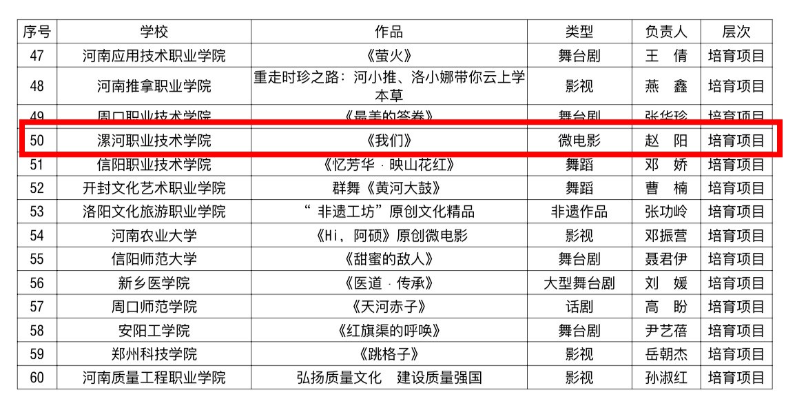 近日,中共河南省委教育工委、河南省教育厅下发《关于公布河南省高校校园原创文化精品项目遴选结果的通知》(豫教工委〔2024〕94号),新葡的京集团8814报送的原创微电影《我们》入选河南省高校校园原创文化精品项目,是学院校园文化品牌建设的又一新突破。