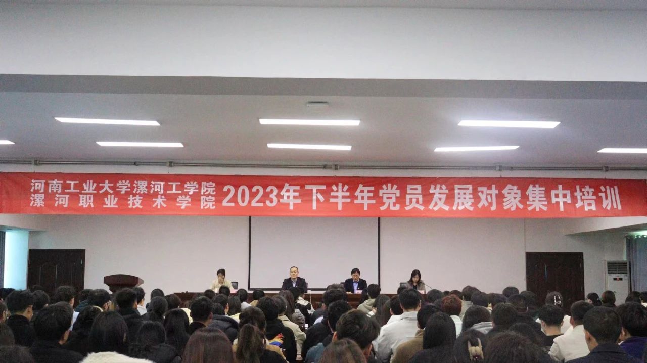 11月23日下午,我院举办河南工业大学漯河工学院、新葡的京集团88142023年下半年党员发展对象集中培训开班仪式。党委副书记薛存心,党委委员、组宣部部长缪俊岭,院团委及相关部门负责同志出席仪式。180余名师生党员发展对象参加仪式。
