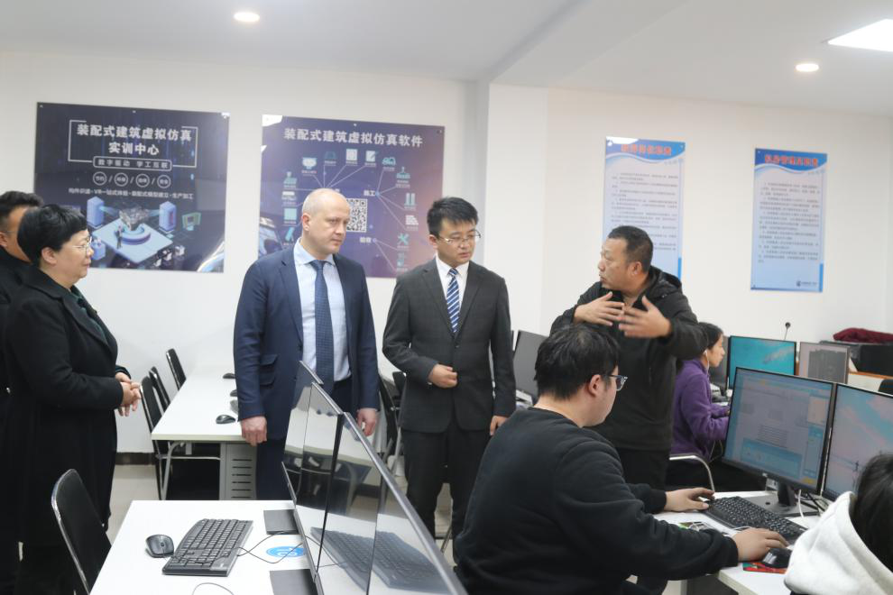 首先,鲁斯兰副校长一行先后参观了学院建筑工程系实训中心、智能制造工程技术中心、新能源汽车实训中心、美术馆等,就学生学习、实训等方面与院系教师进行了交流。